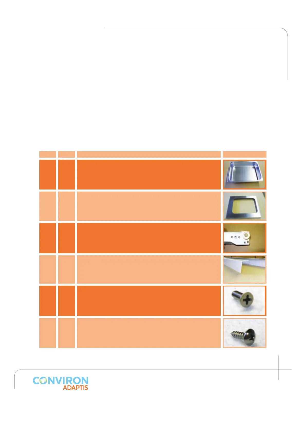 The Adaptis A1000 drip pan accessory (P/N 220685) is composed of the following elements: