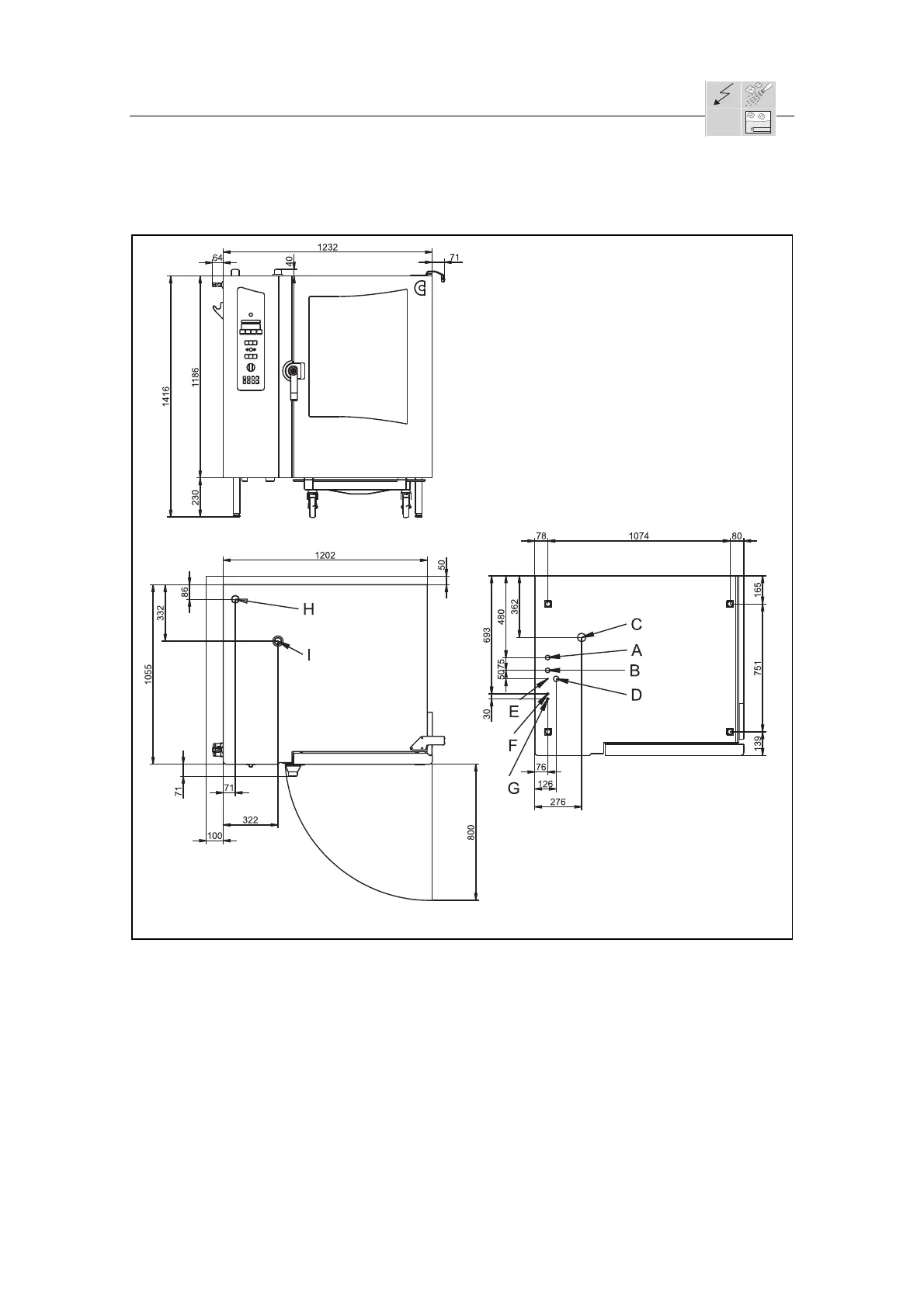A = Wasseranschluss Weichwasser G¾“ E = Potentialausgleich