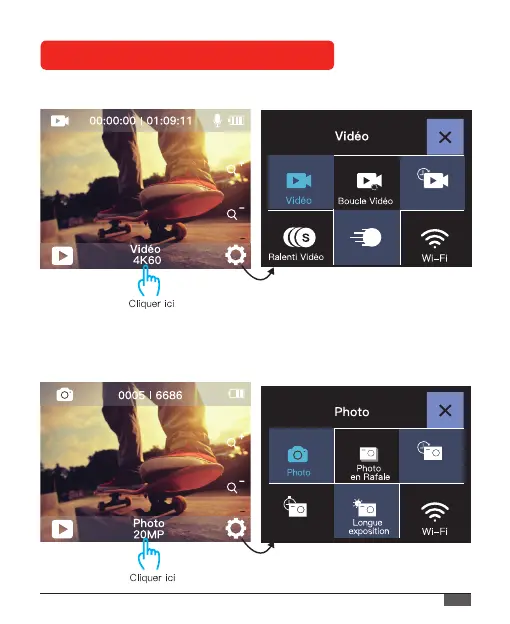 Il existe 6 modes en mode photo : Photo, Photo en rafale, Time Lapse