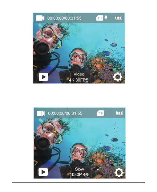 l’obturateur, la caméra sport enregistre une vidéo au ralenti.