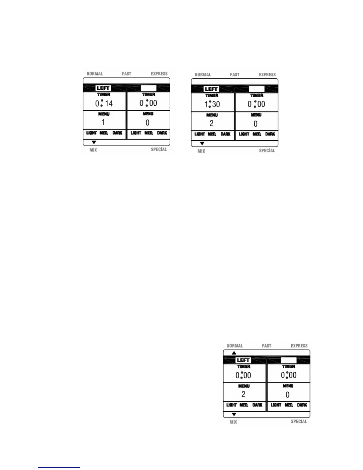 3 Pizza or 4 Bagel.The timer and menu information on the LCD will be updated