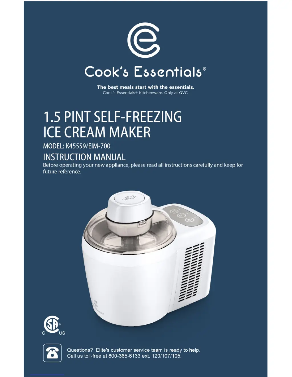 If your Cook's essentials Ice Cream Maker does not power on, the motor may be assembled incorrectly. Ensure you have followed the instructions in the manual on how to assemble the motor (3) and top cover (1) to the body and that the magnetic switches are activated by the pins found underneath the motor (3).