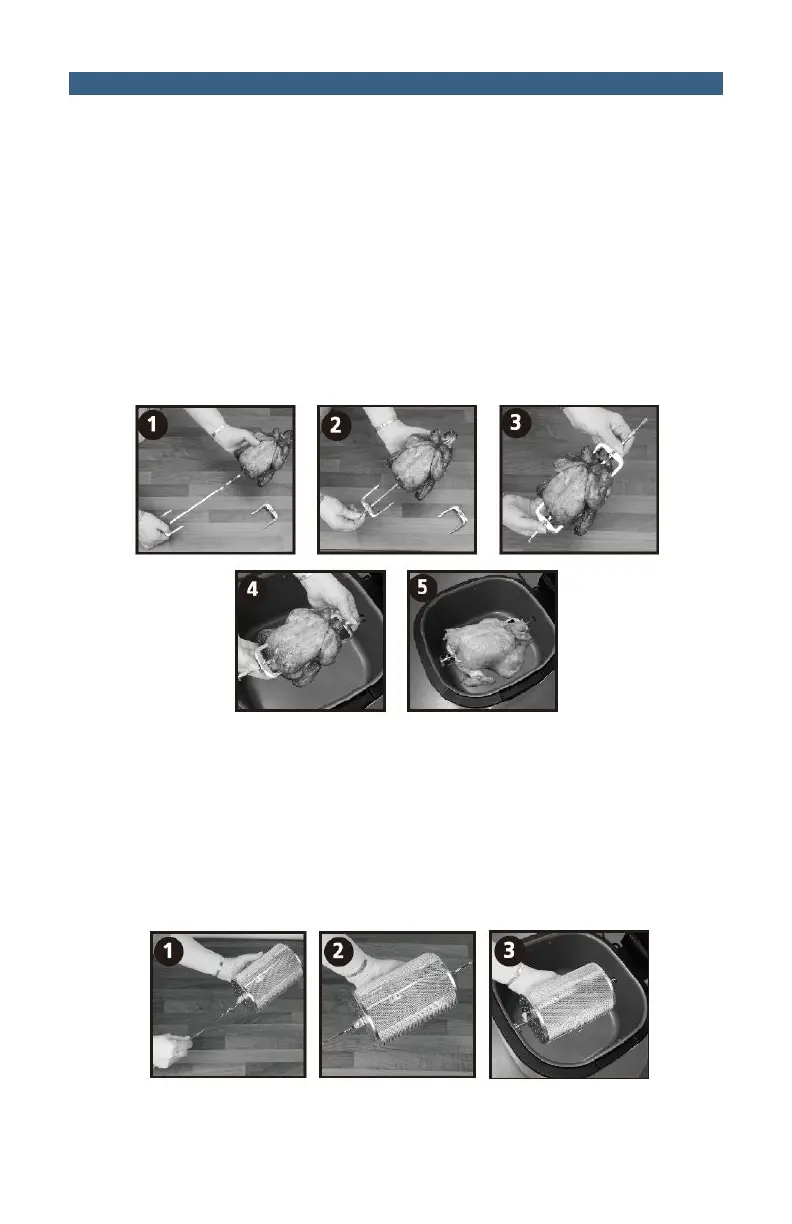2. Push the Skewer (25) through the center of the chicken or meat you wish to cook (see Step