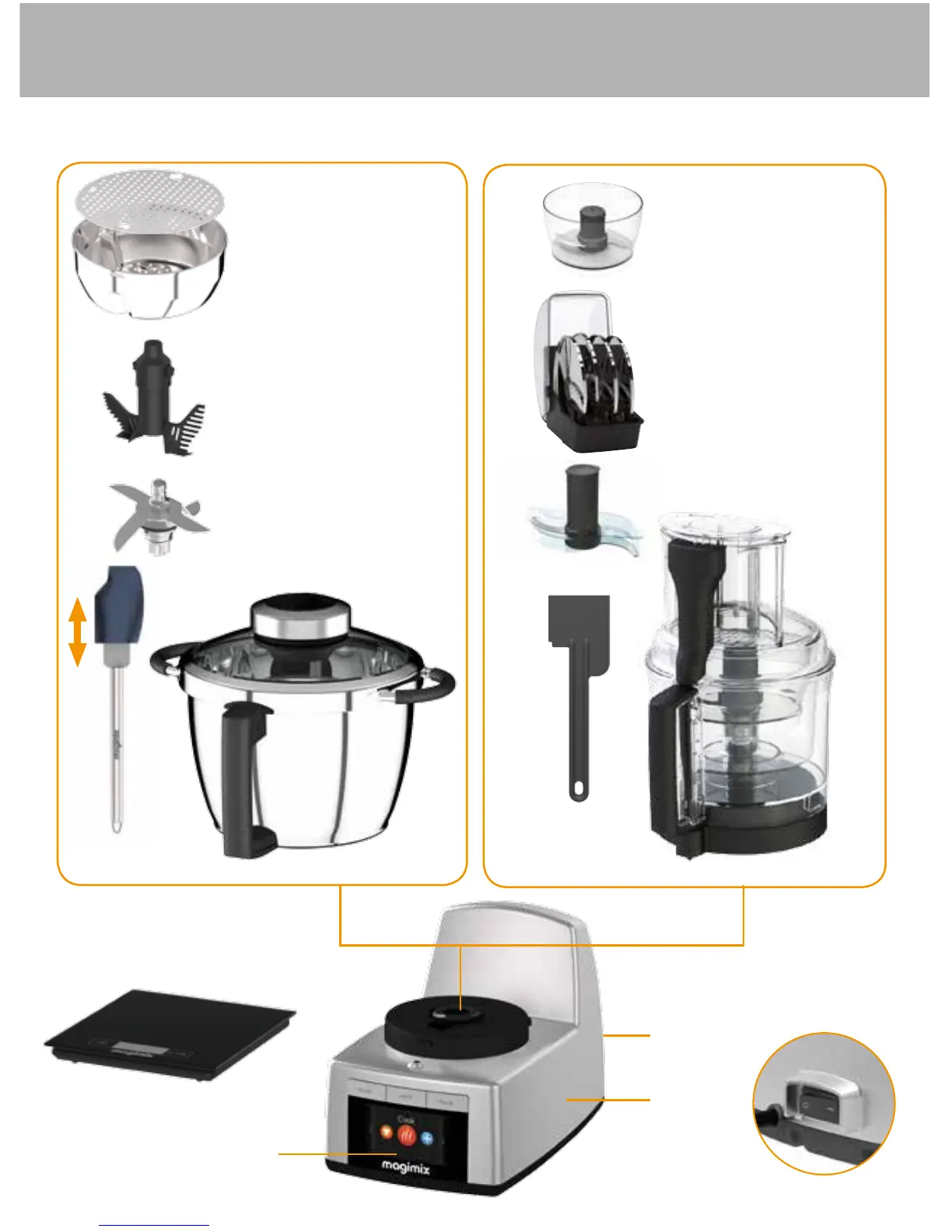 COOK MAGIMIX - General Description; Metal Bowl and Accessories; Clear Bowl and Accessories; Base Components