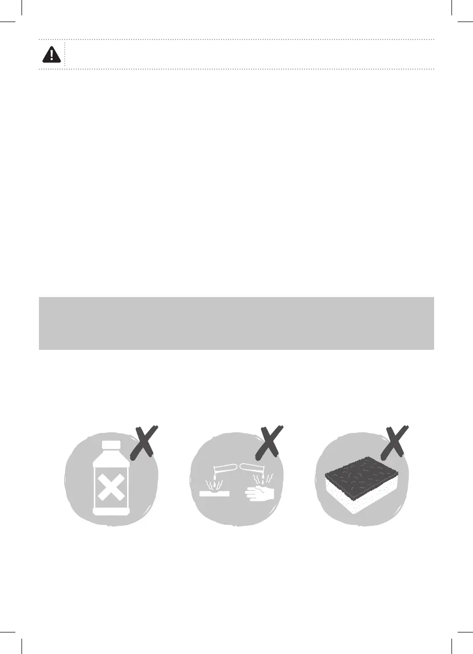 • Do not use harsh abrasive cleaners or sharp metal scrapers to
