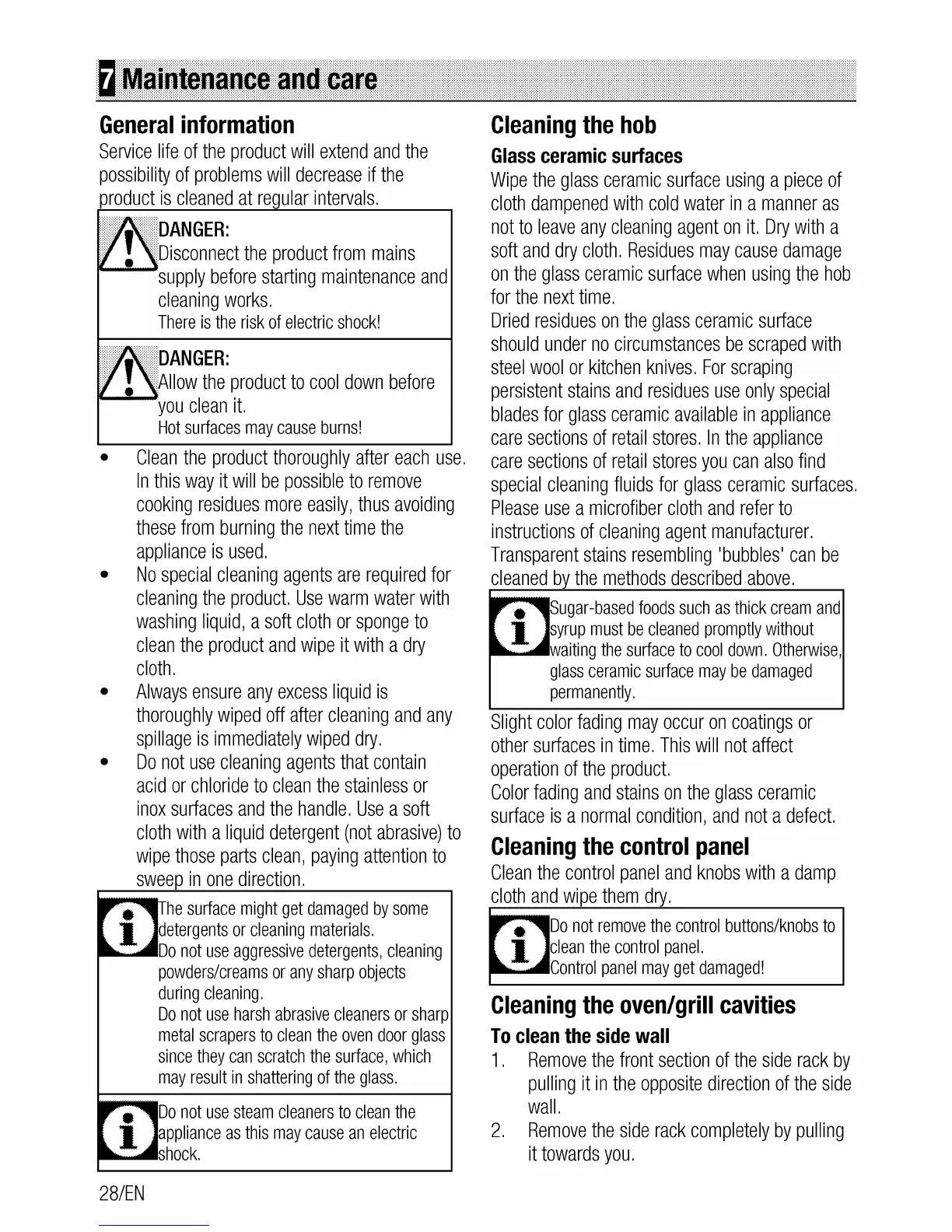 Cookmaster CK100C210 - Maintenance and Care; General Information; Cleaning the Hob; Glass Ceramic Surfaces