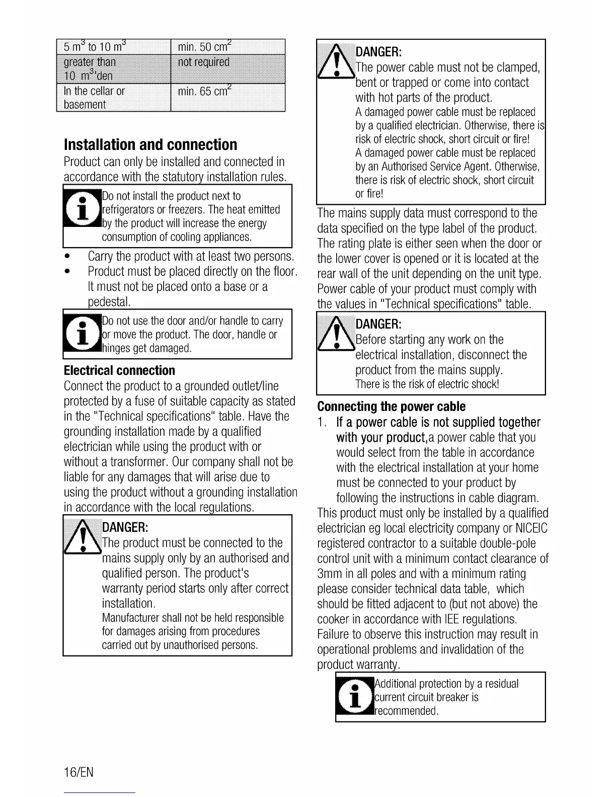 Cookmaster CK100F232 - Electrical and Gas Connections; Power Cable Connection