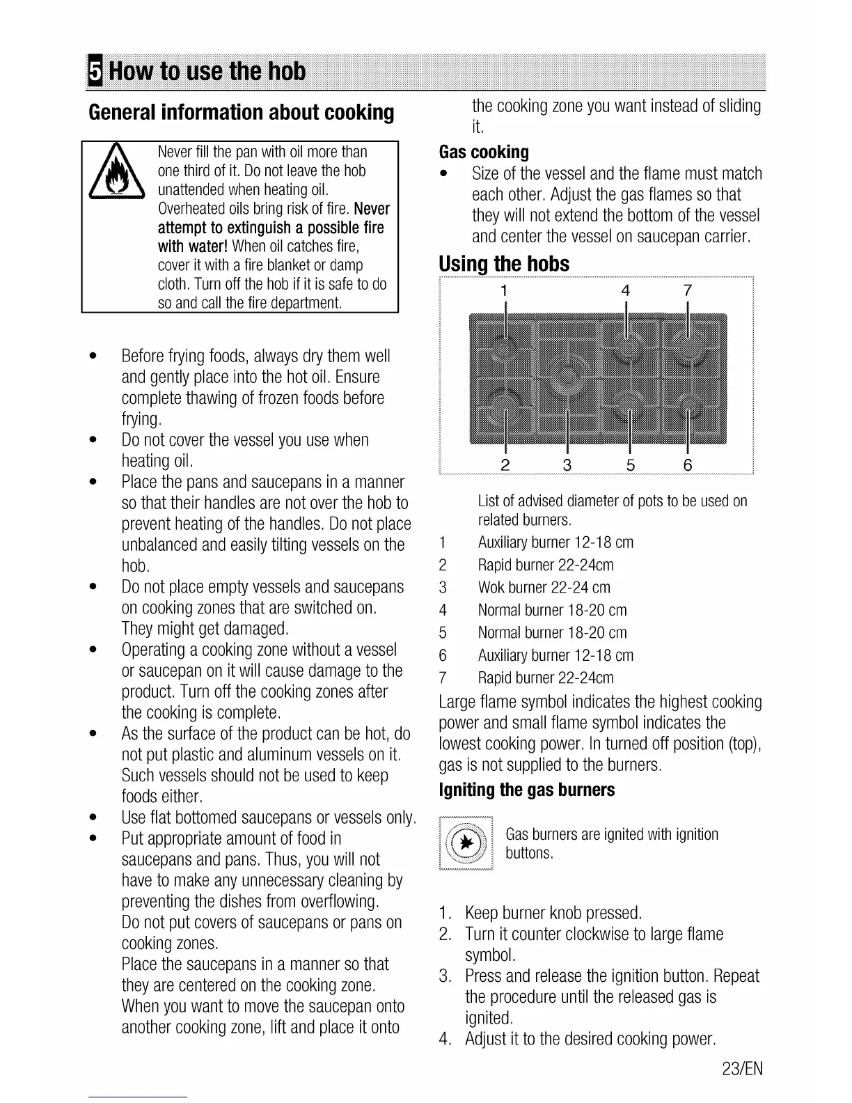 Cookmaster CK100F232 - Hob Operation; General Hob Cooking Guidelines; Hob Burner Operation and Ignition