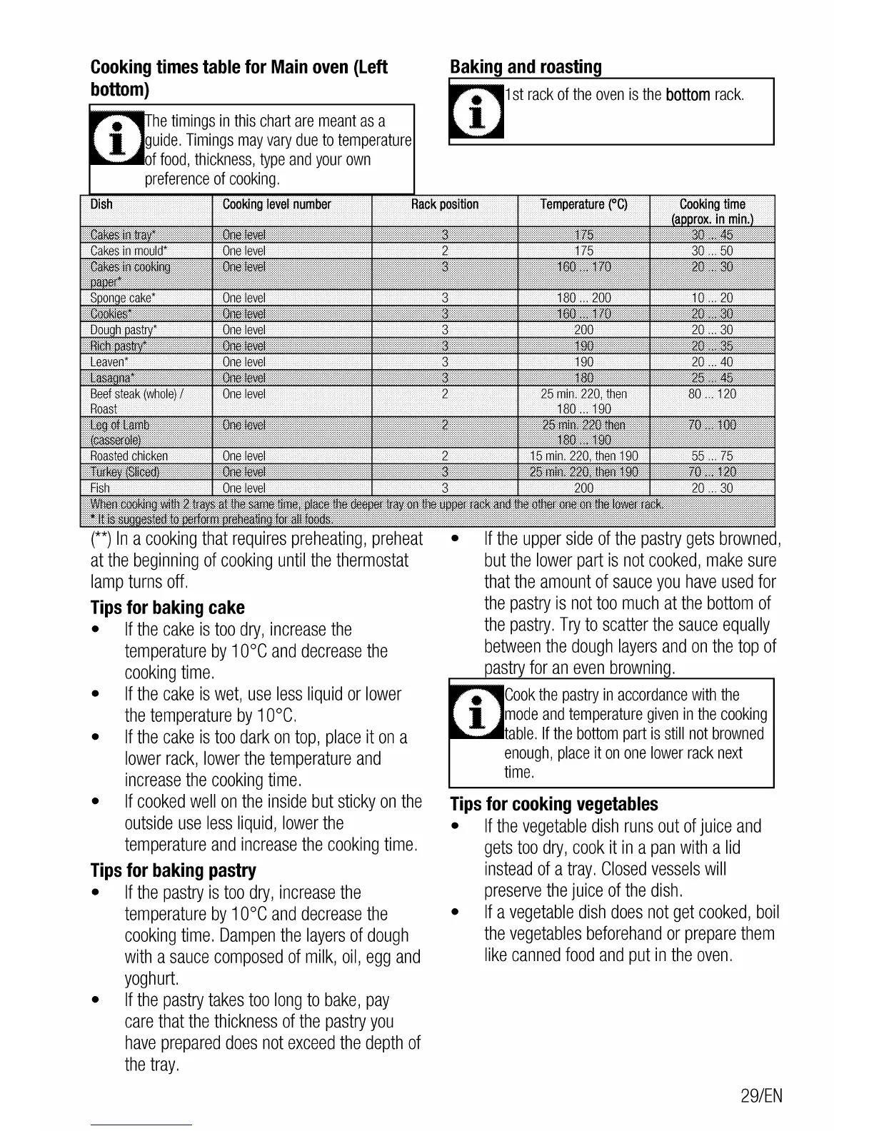 Cookmaster CK100F232 - Main Oven Cooking Times