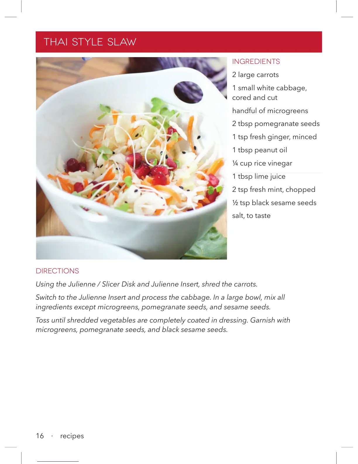 Switch to the Julienne Insert and process the cabbage. In a large bowl, mix all
