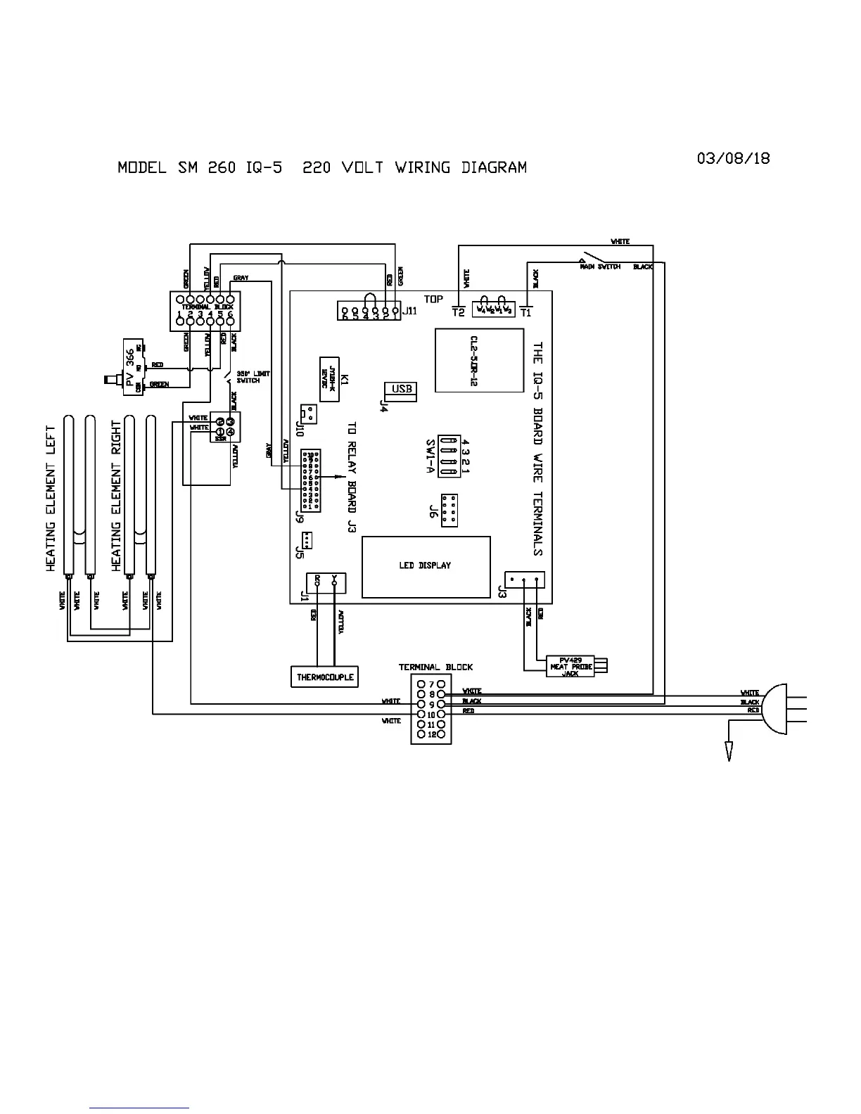 Cookshack SM360 - SM260 IQ5 220 V Wiring Diagram