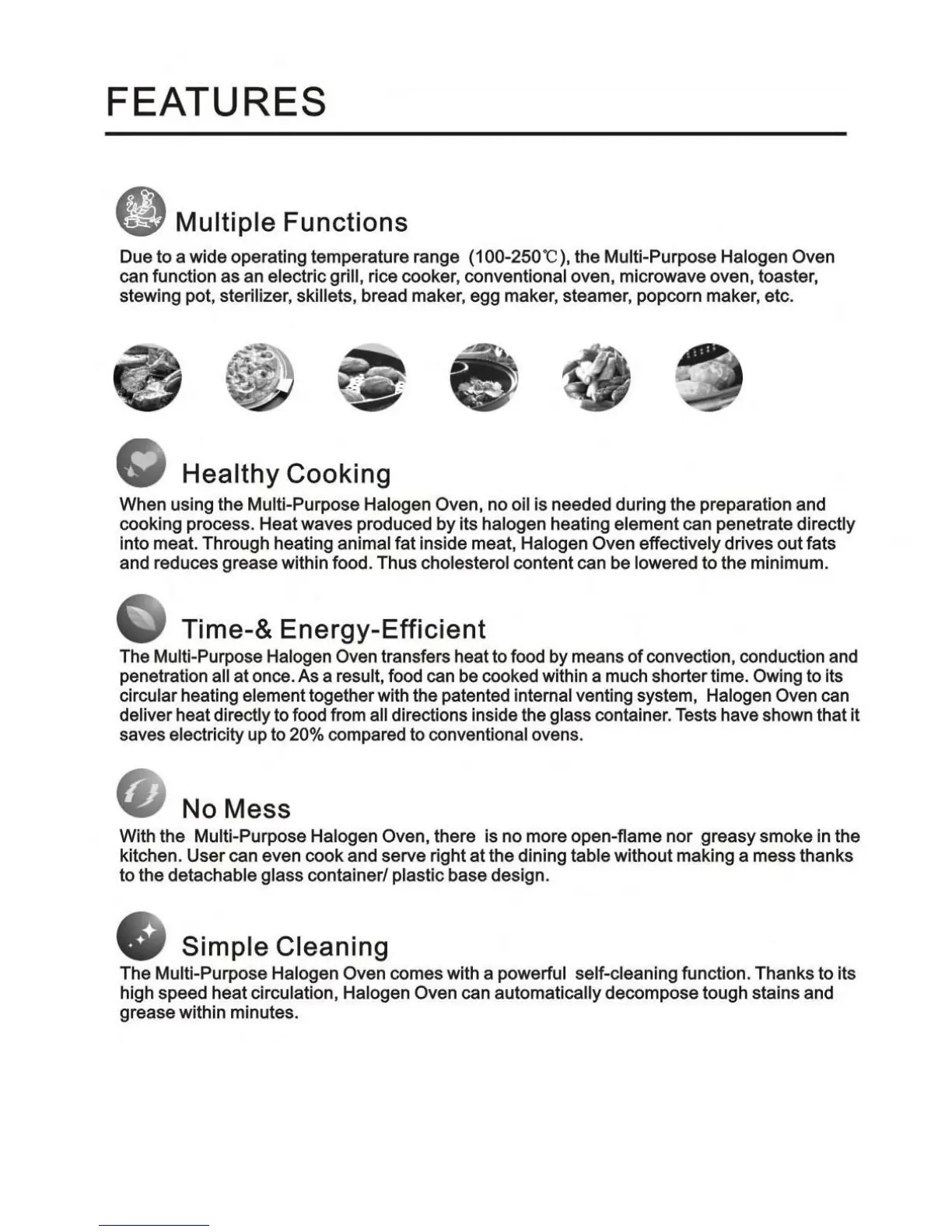 Cookshop 7865 - FEATURES; Multiple Functions; Healthy Cooking; Time- & Energy-Efficient