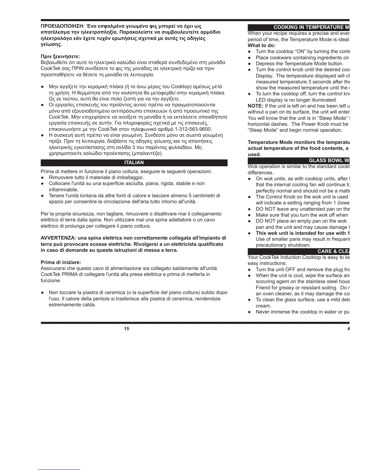 CookTek σας ΠΡΙΝ συνδέσετε το φις της μονάδας σε ηλεκτρική πρίζα και πριν