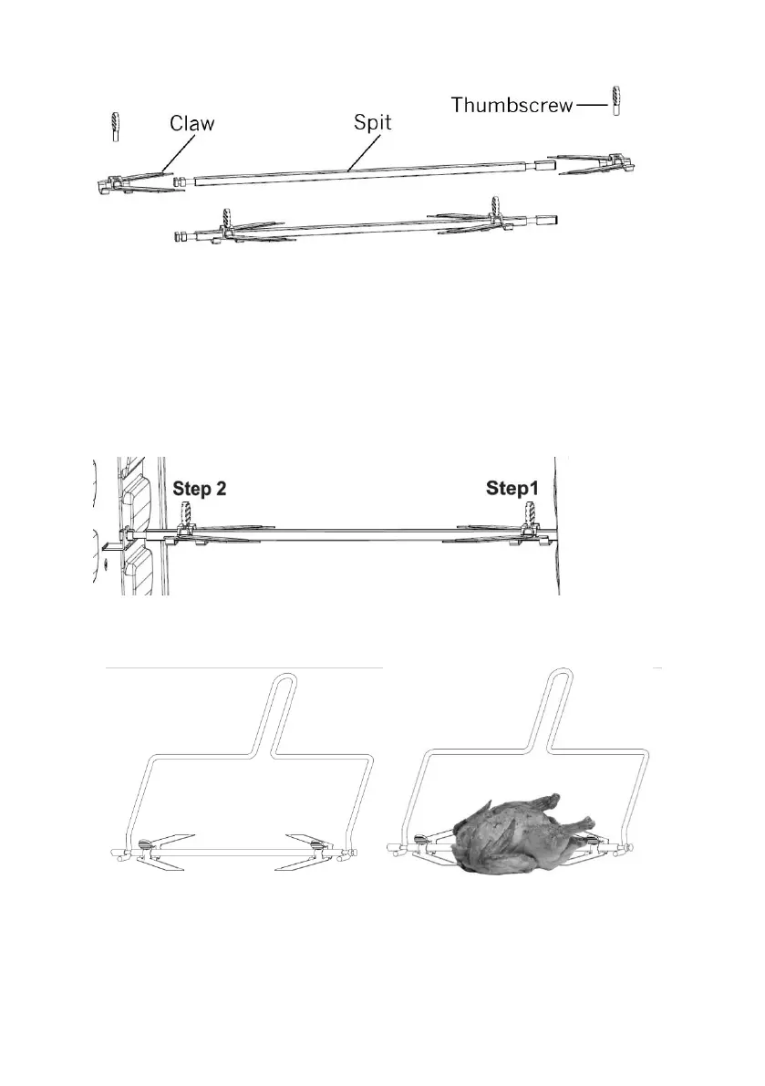 Fit the claws onto the rotisserie spit with the claws facing inwards