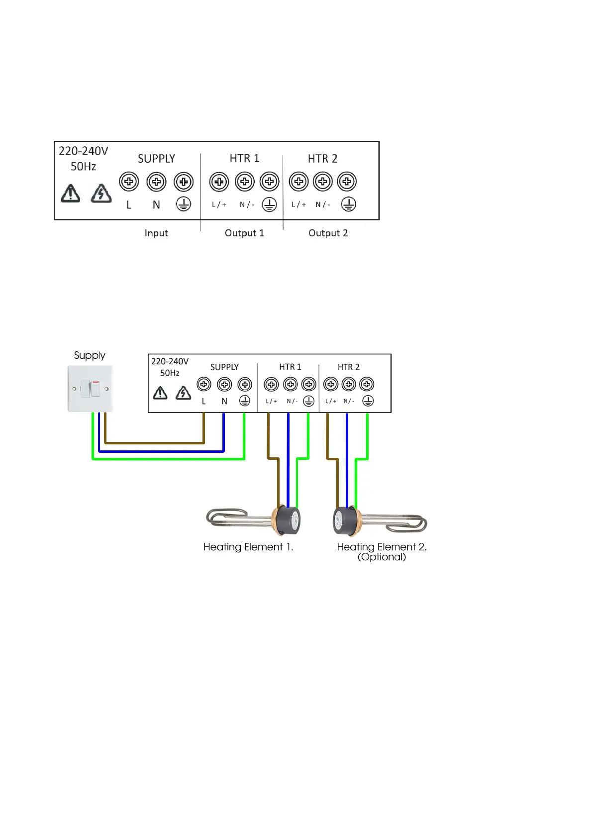 Heating elements to be connected as above.