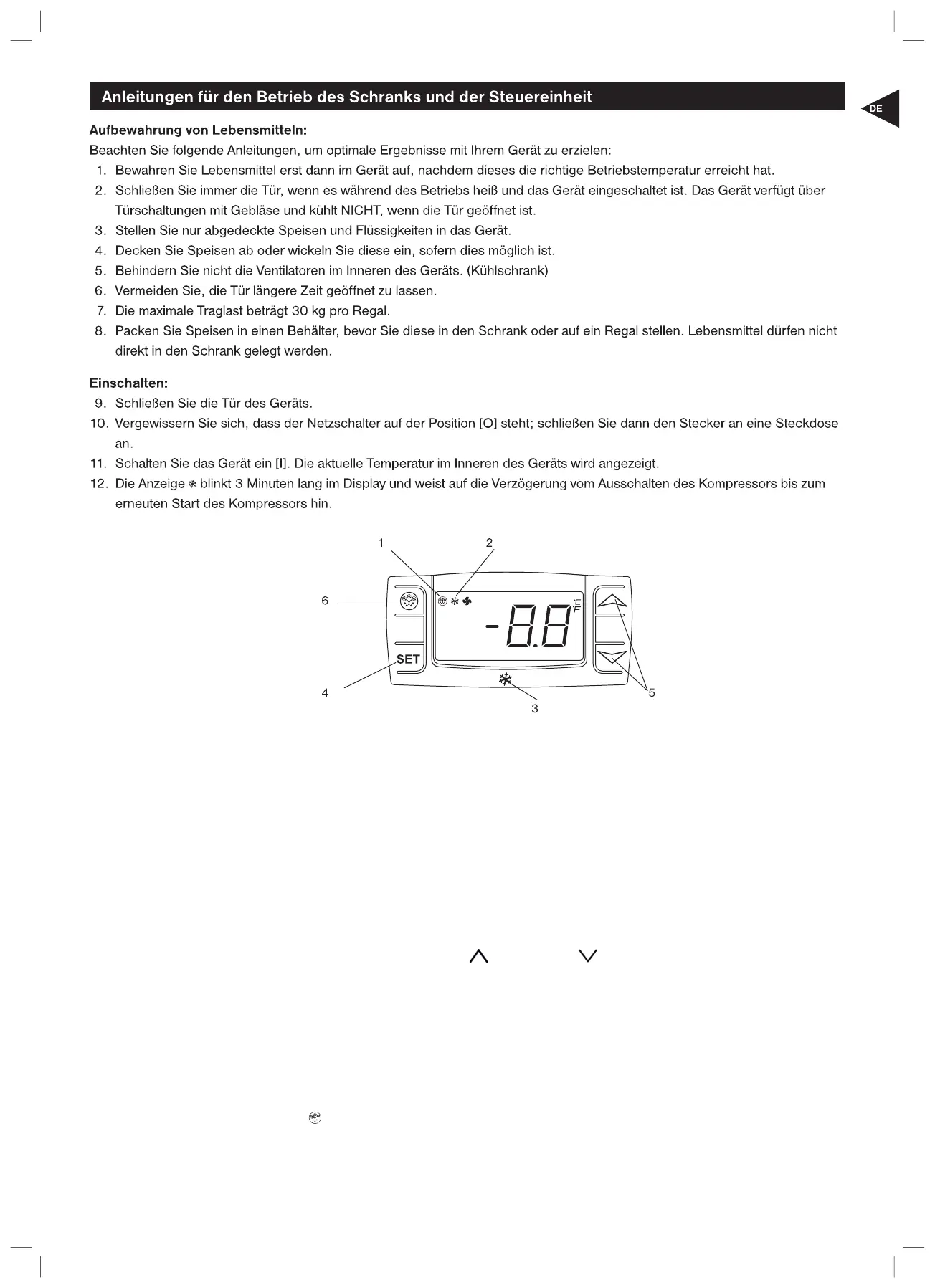 Anmerkung: Die Abtauungszeitschaltung beginnt mit der ersten Inbetriebnahme des Gerätes.