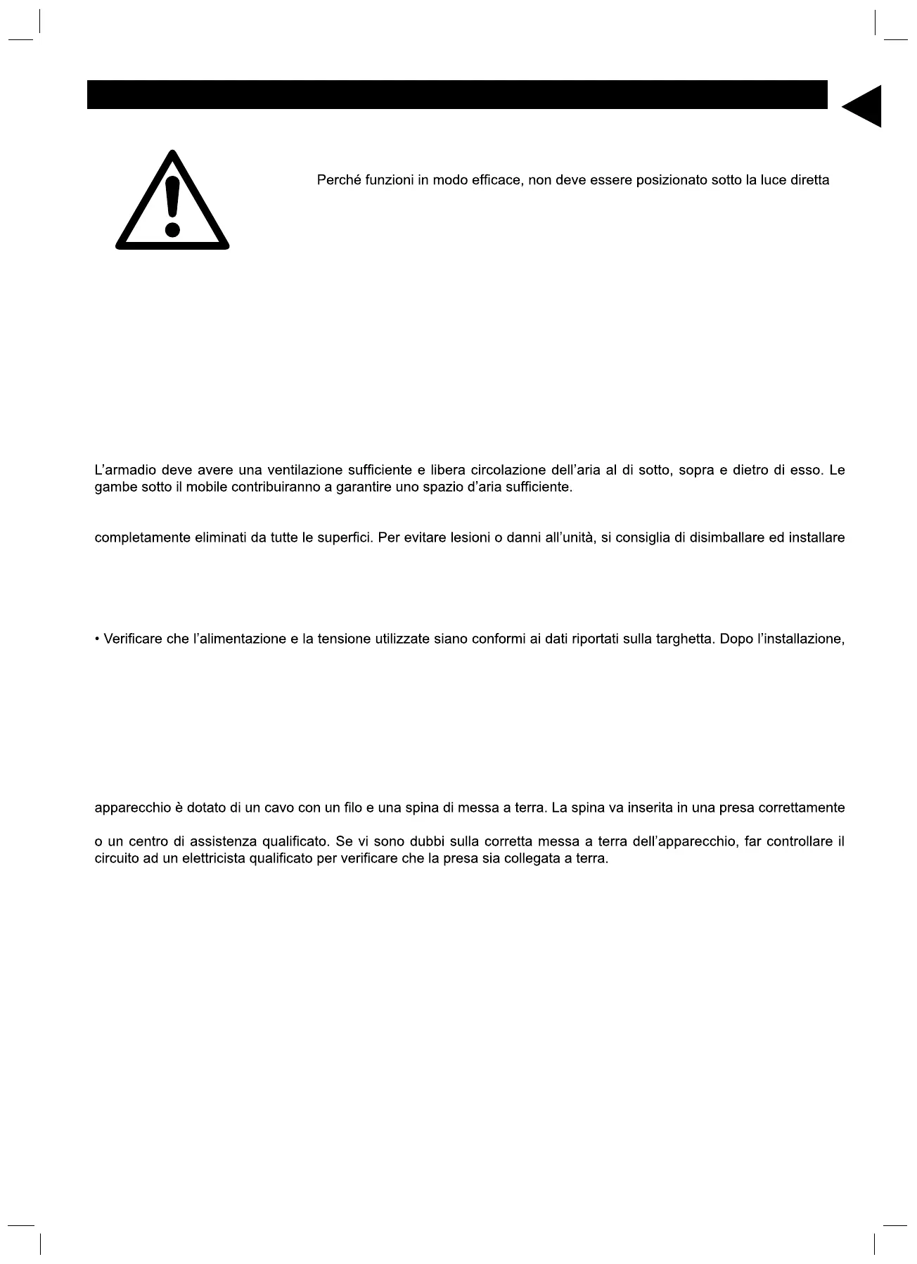 Il mobile deve essere posto in un locale asciutto e sufficientemente ventilato.