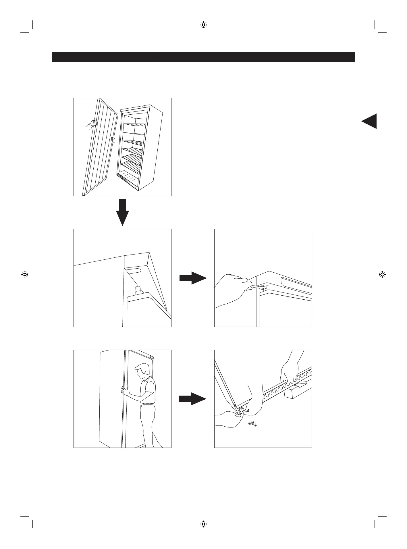 11. Turn the door up side down and connect to the upper hinge.
