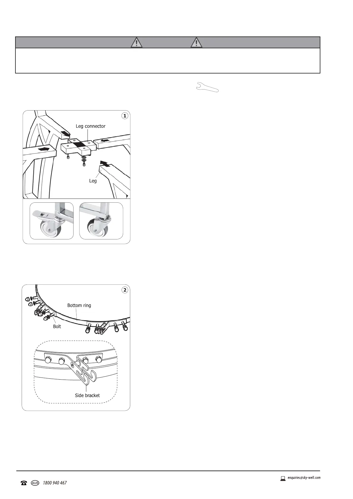 with the wrench provided. Repeat the other castors.