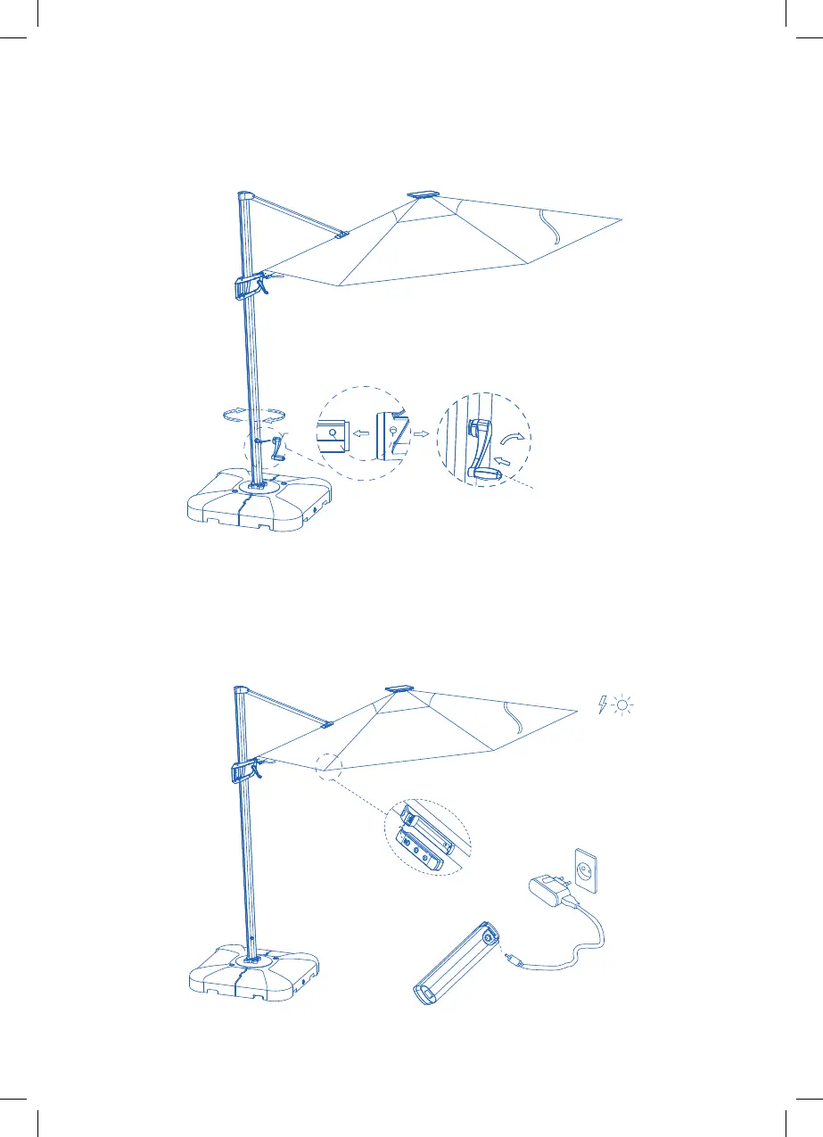 The light controller is installed at the end of the internal umbrella rib. When charging