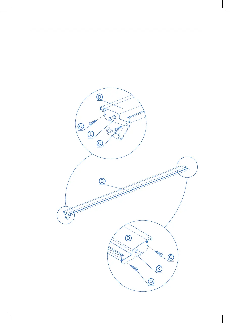 on the inside of the le end of the louvre. Use two of the 25mm screws (Q) to ax