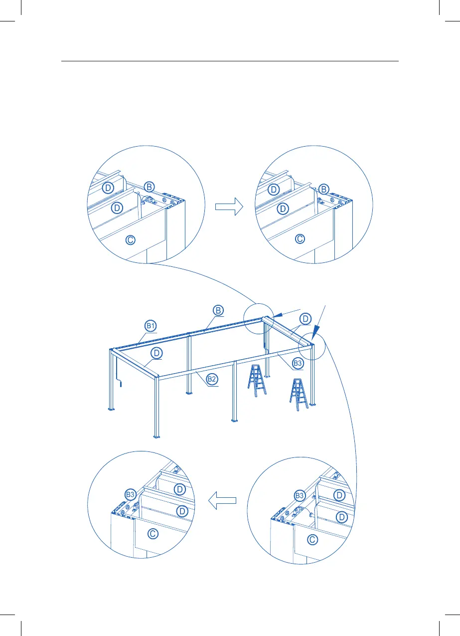 Install a louvre (D) into the rst position, next to the beam (C). Ensuring this louvre