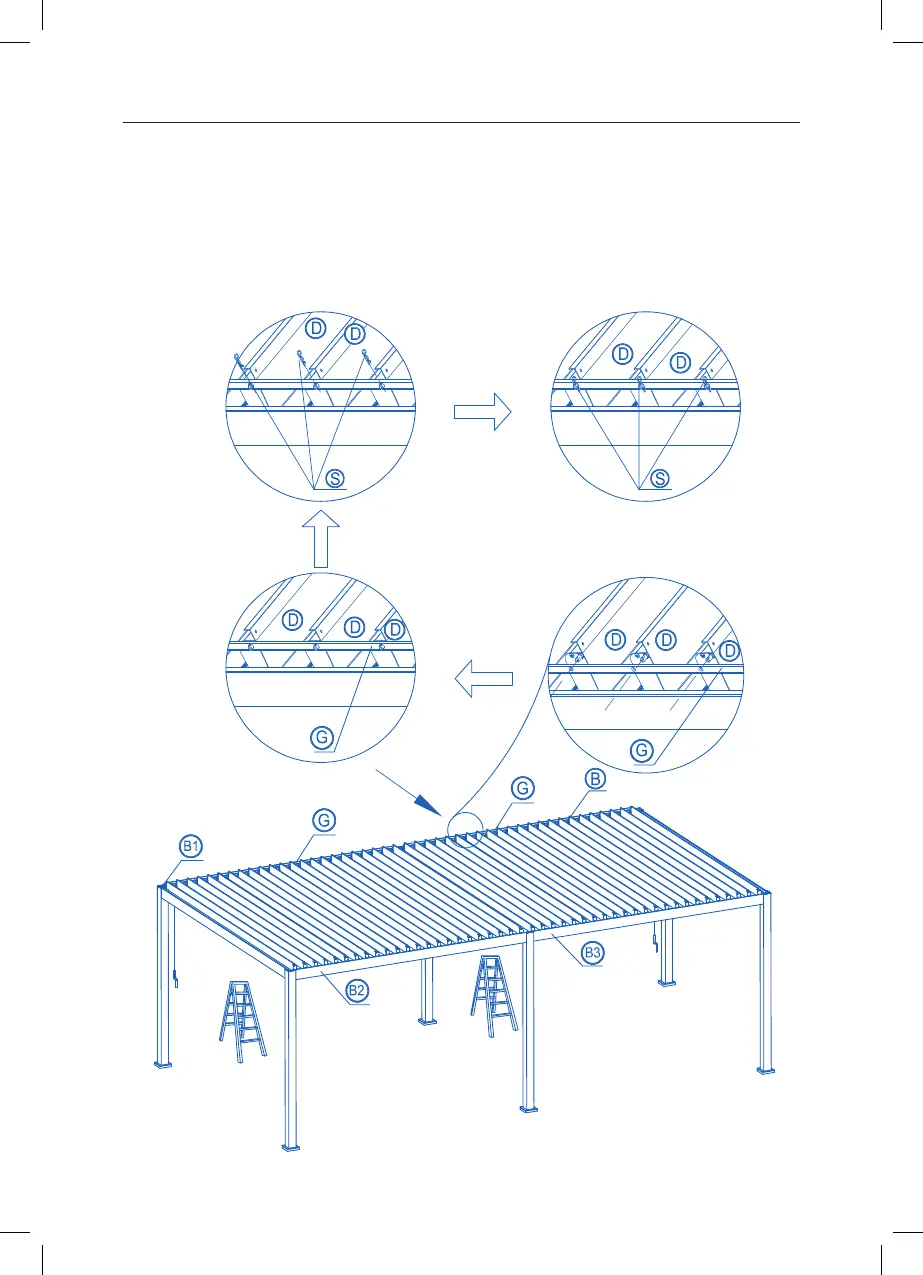 Once all louvres are correctly installed, take the louvre guide rail (G) and line up the
