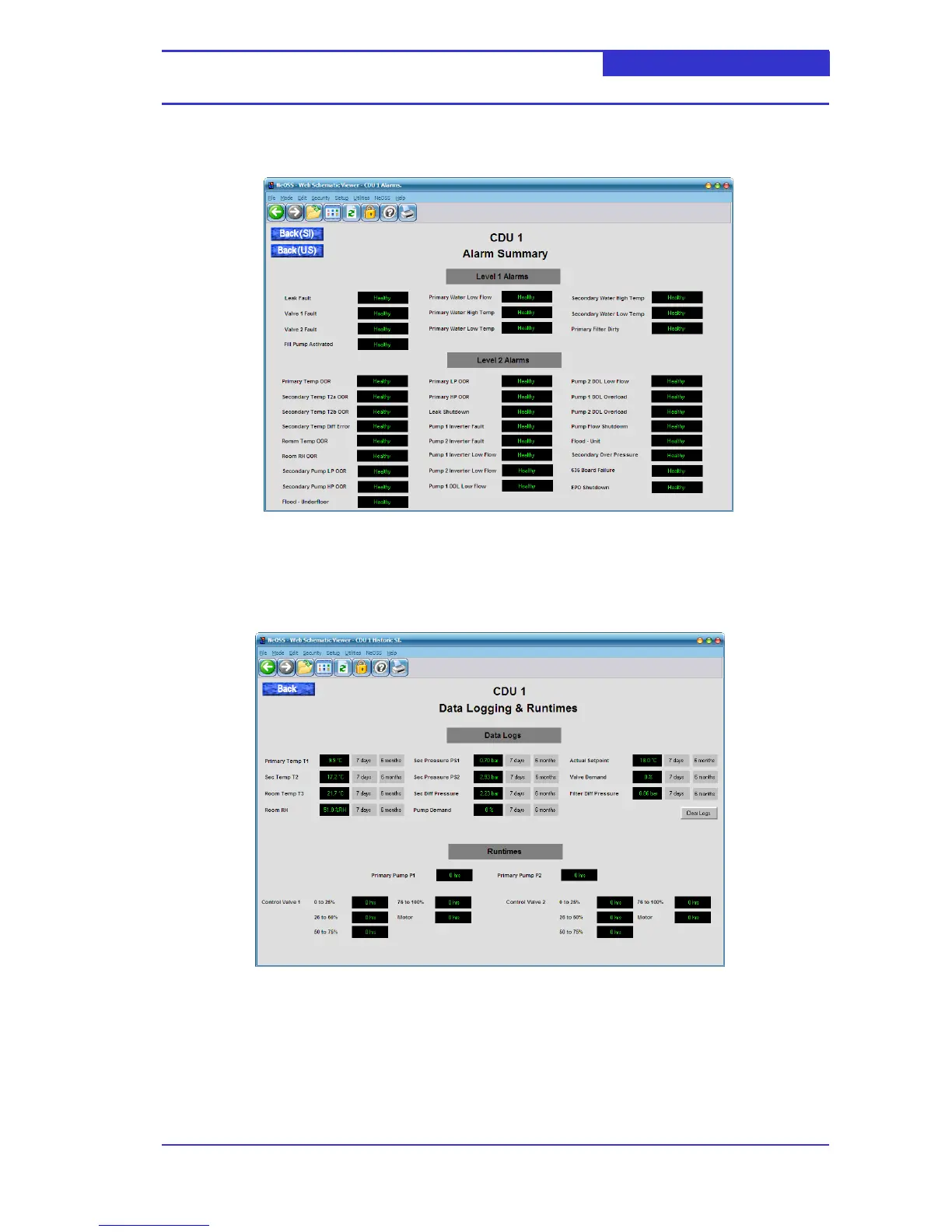 The datalog section provides access to historic trending data for a number of CDU data