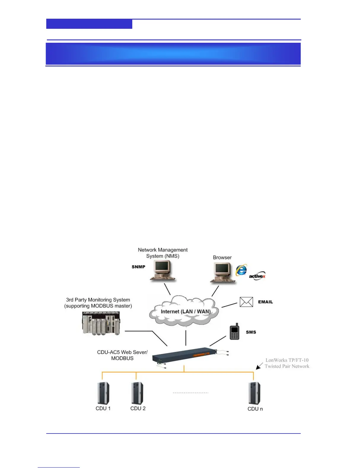 the locally connected CDUs via the LonWorks network. Adjustment of set points and