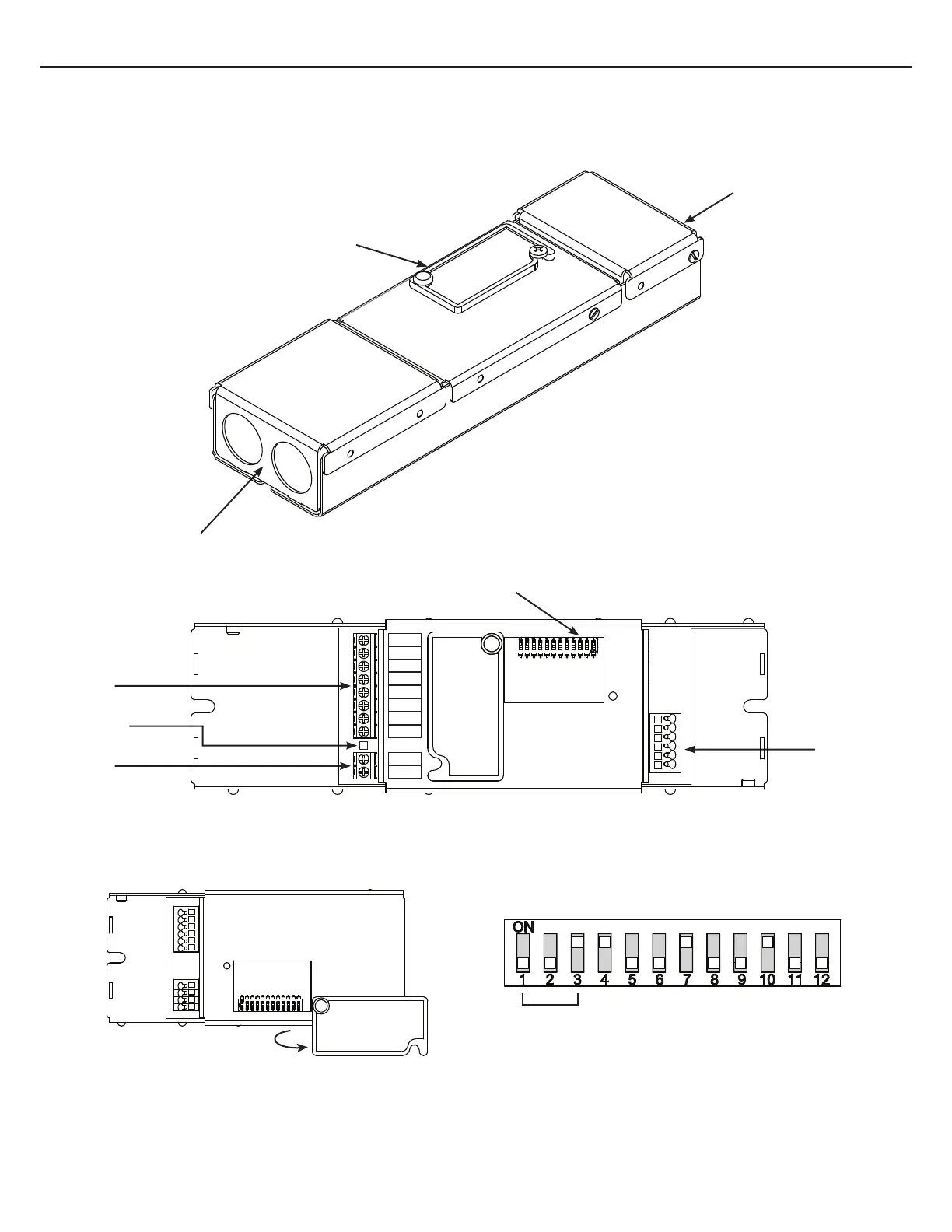 To access the DIP switches for selecting the operational mod, unfasten the cover screw and rotate cover out of the way.