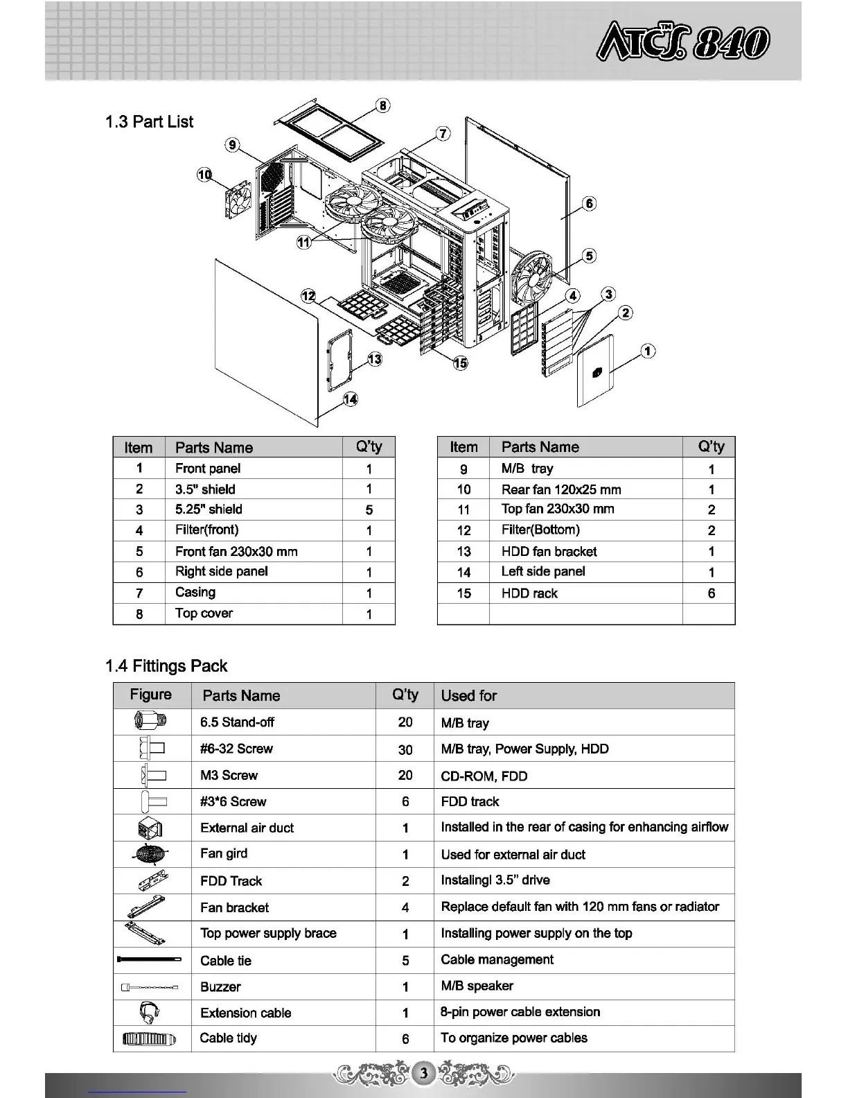 Cooler Master ATCS 840 - Part List; Fittings Pack