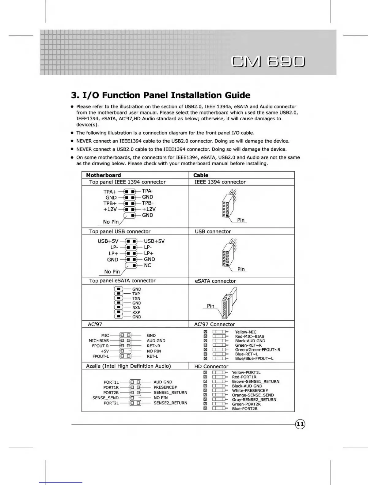 Cooler Master CM 690 - I;O Function Panel Installation Guide
