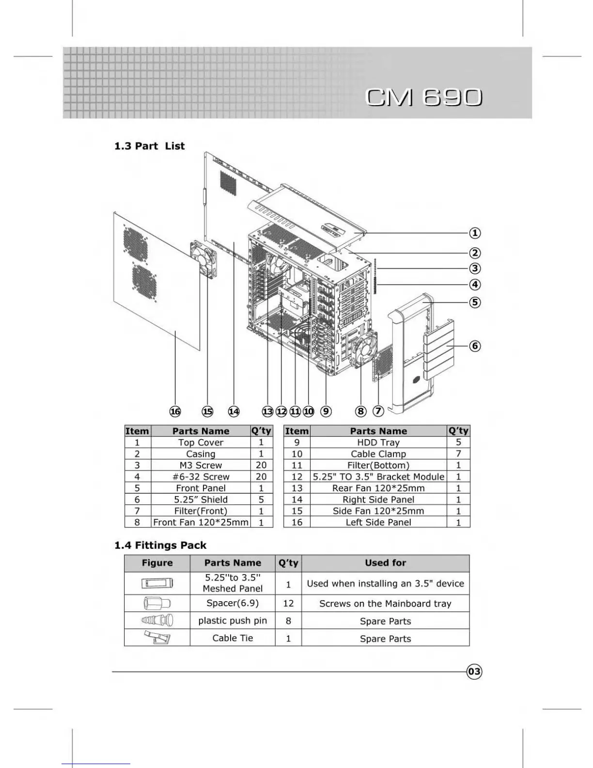 Cooler Master CM 690 - 1.3 Part List; 1.4 Fittings Pack
