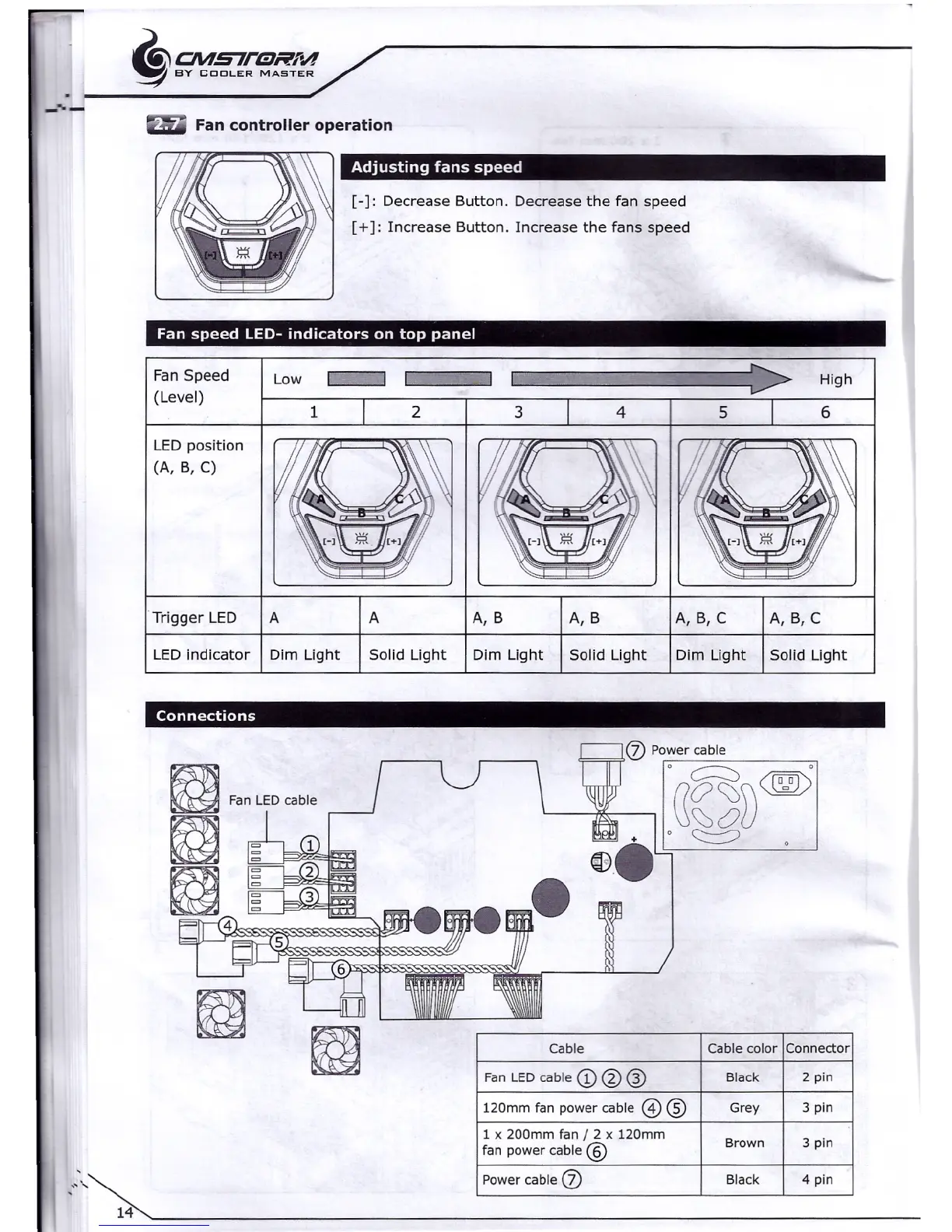 [-]: Decrease Button. Decrease the fan speed