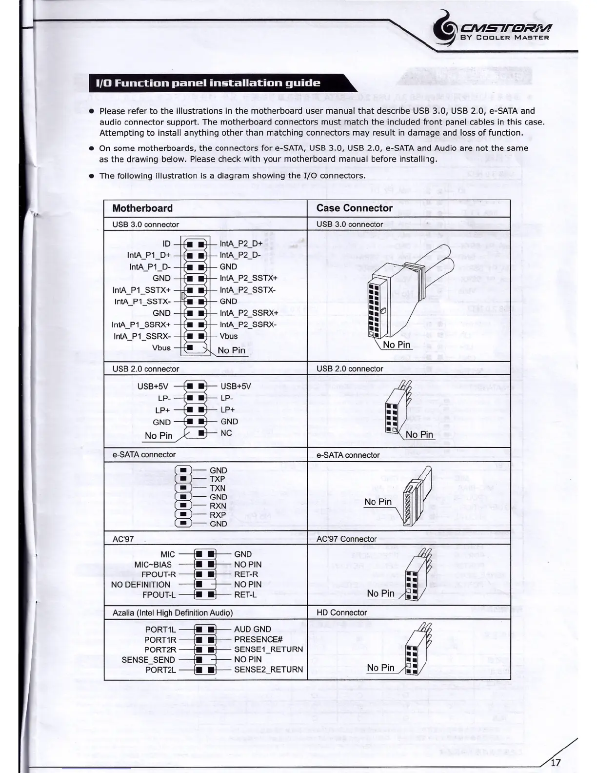 • On some motherboards, the connectors for e-SATA, USB 3.0, USB 2.0, e-SATA and Audio are not the same