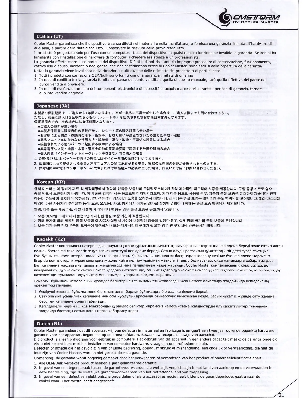 cattlvc uso 0 abuso, incident! 0 negligenza, che non costituiscono errori di Cooler Master, sono esclusi dalla copertura della garanzia