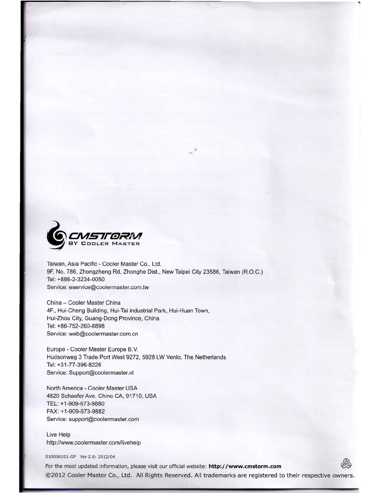 ©2012 Cooler Master Co., Ltd. All Rights Reserved. All trademarks are registered to their respective owners.
