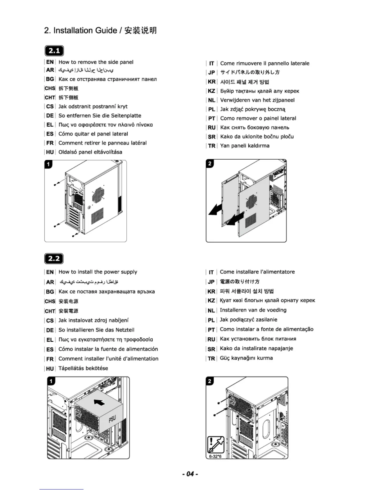 Cooler Master Elite 241 - Installation Guide; Remove Side Panel; Install Power Supply