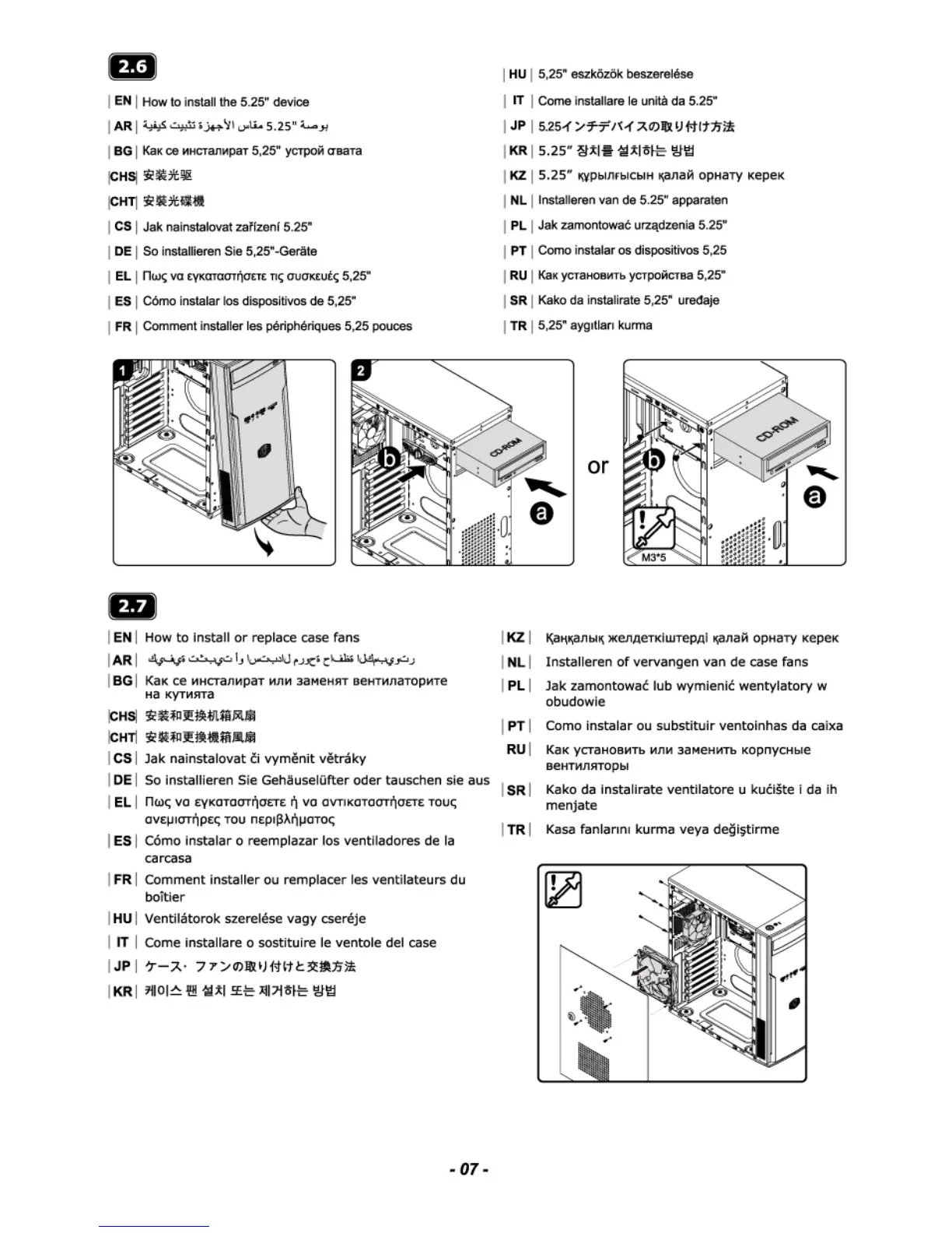Cooler Master Elite 241 - Install 5.25 Device; Install or Replace Case Fans