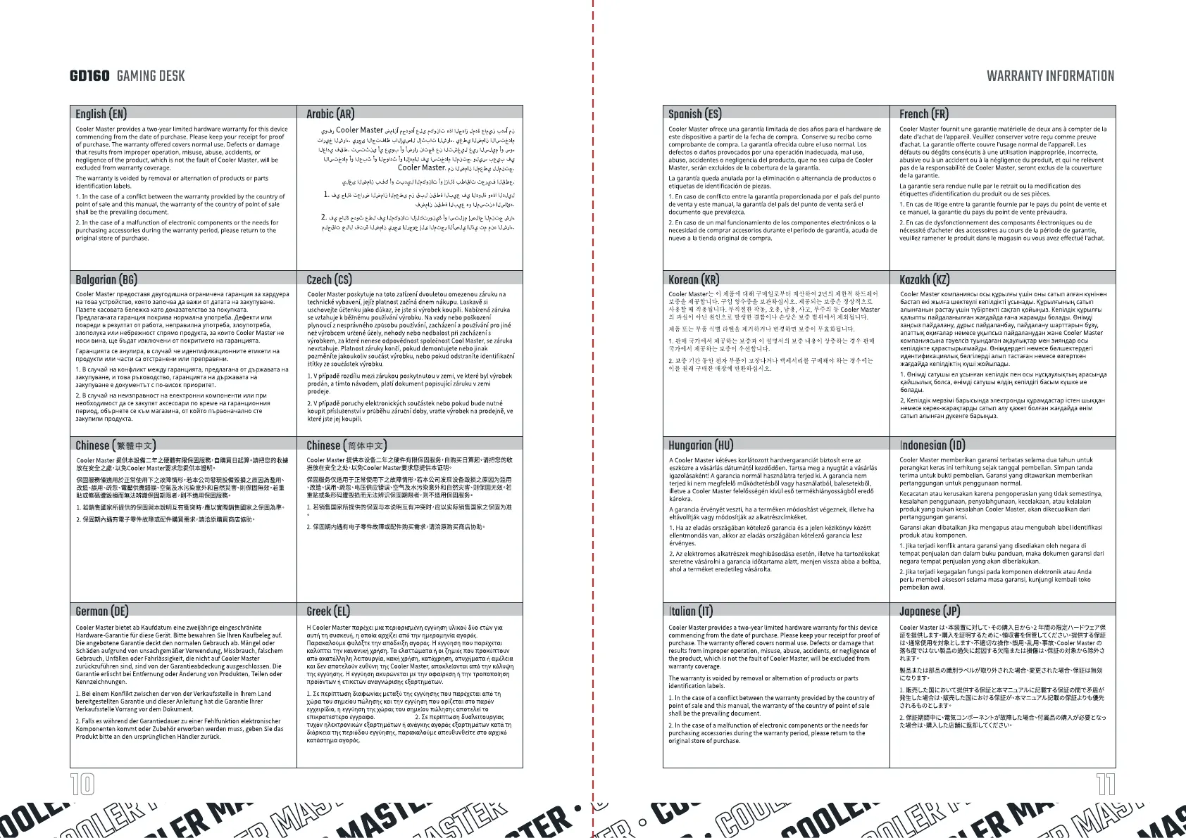 CoolerMasterprovidesatwo-year limitedhardwarewarranty for this device