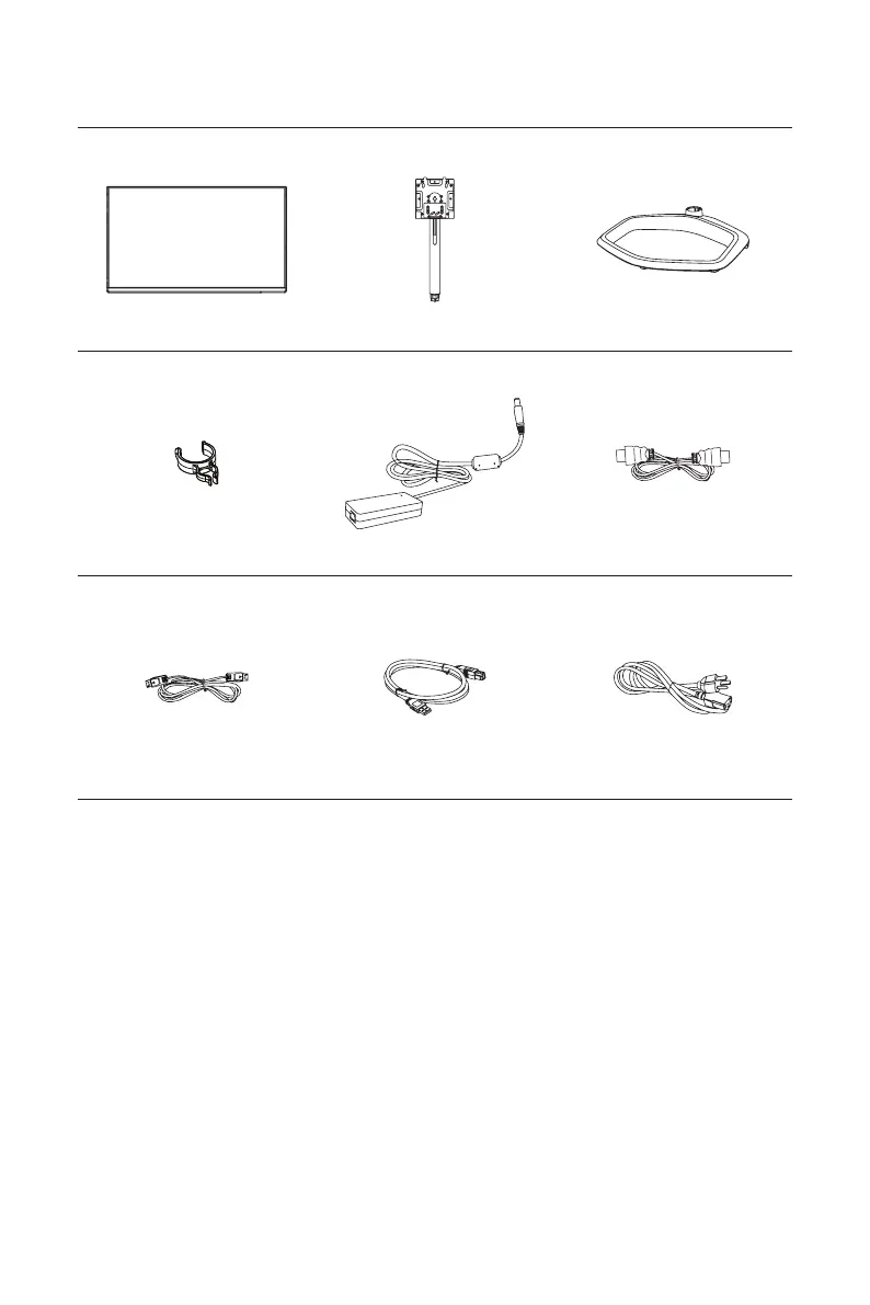 DP cable USB-A to USB-B cable Power cord (Optional)