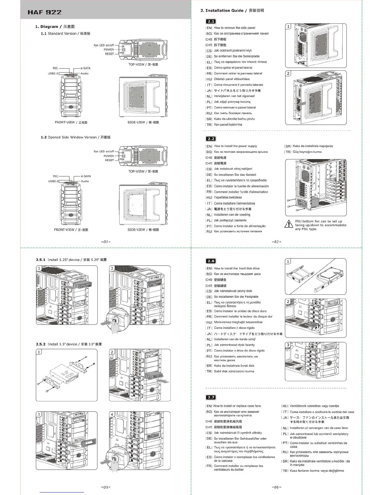 Cooler Master HAF 922 - Diagrams; Standard Version Diagram; Opened Side Window Version Diagram; Installation Guide