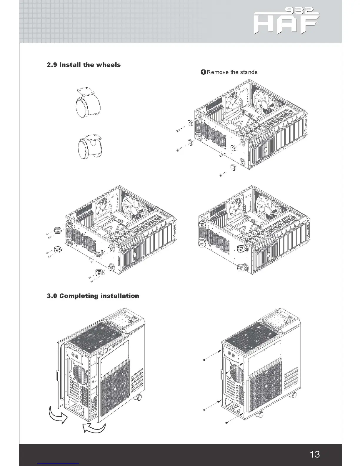 Cooler Master HAF 932 - Installing the Case Wheels; Completing the Installation