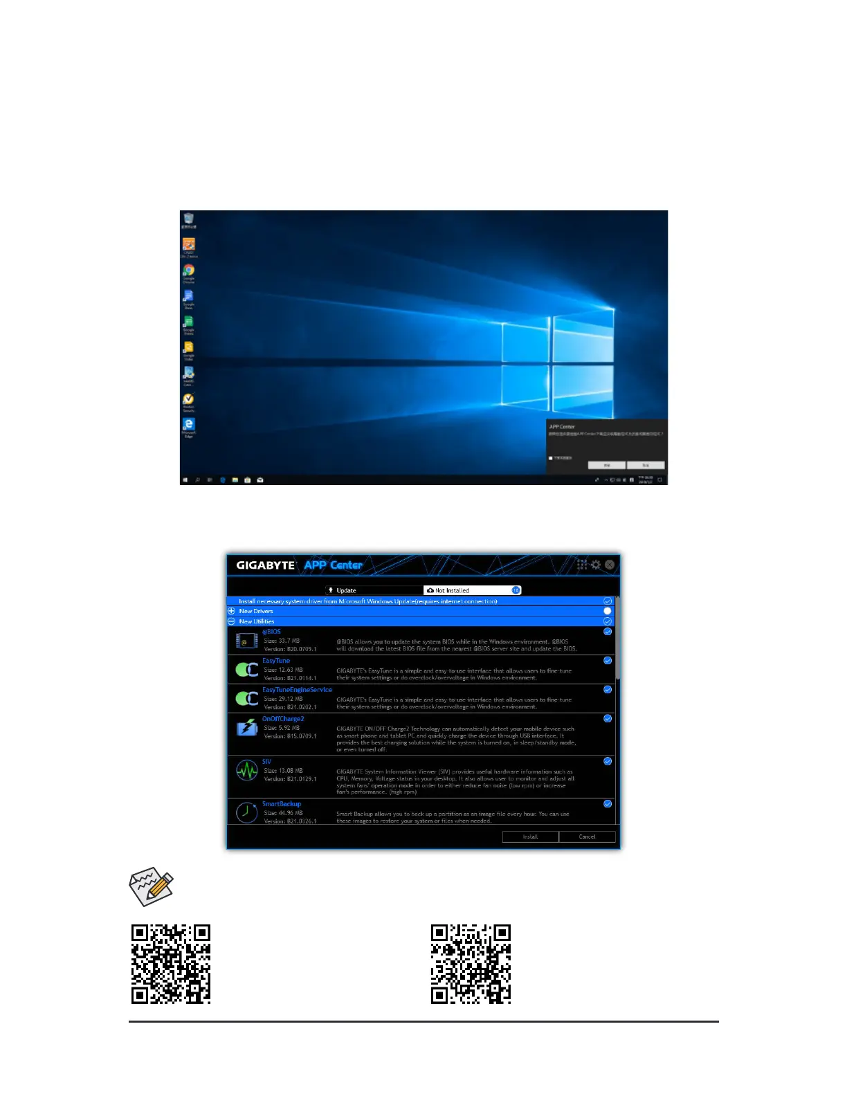 you want to download and install the drivers and GIGABYTE applications viaAPP Center. Click Install to proceed