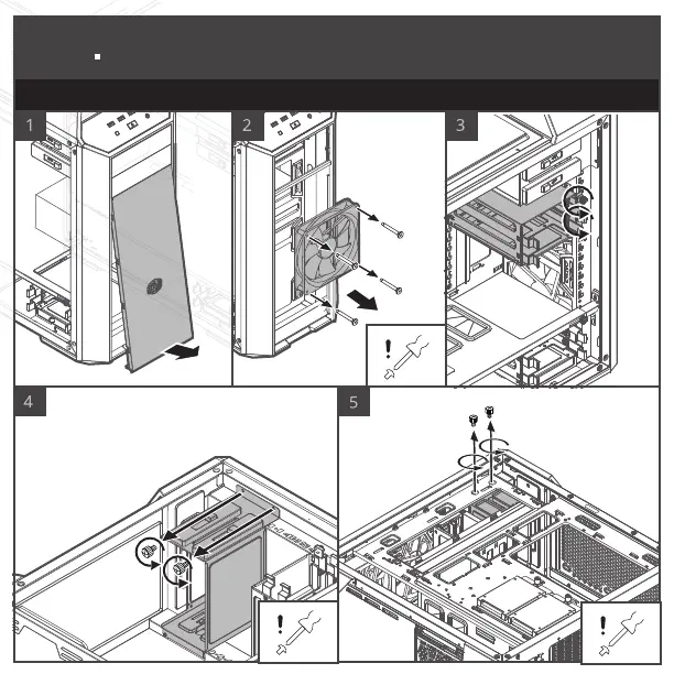 Cooler Master MASTERCASE MC500 - Front Radiator Installation (240;280 mm); Prepare Front Panel for Radiator; Mount 240;280 mm Radiator; Secure 240;280 mm Radiator
