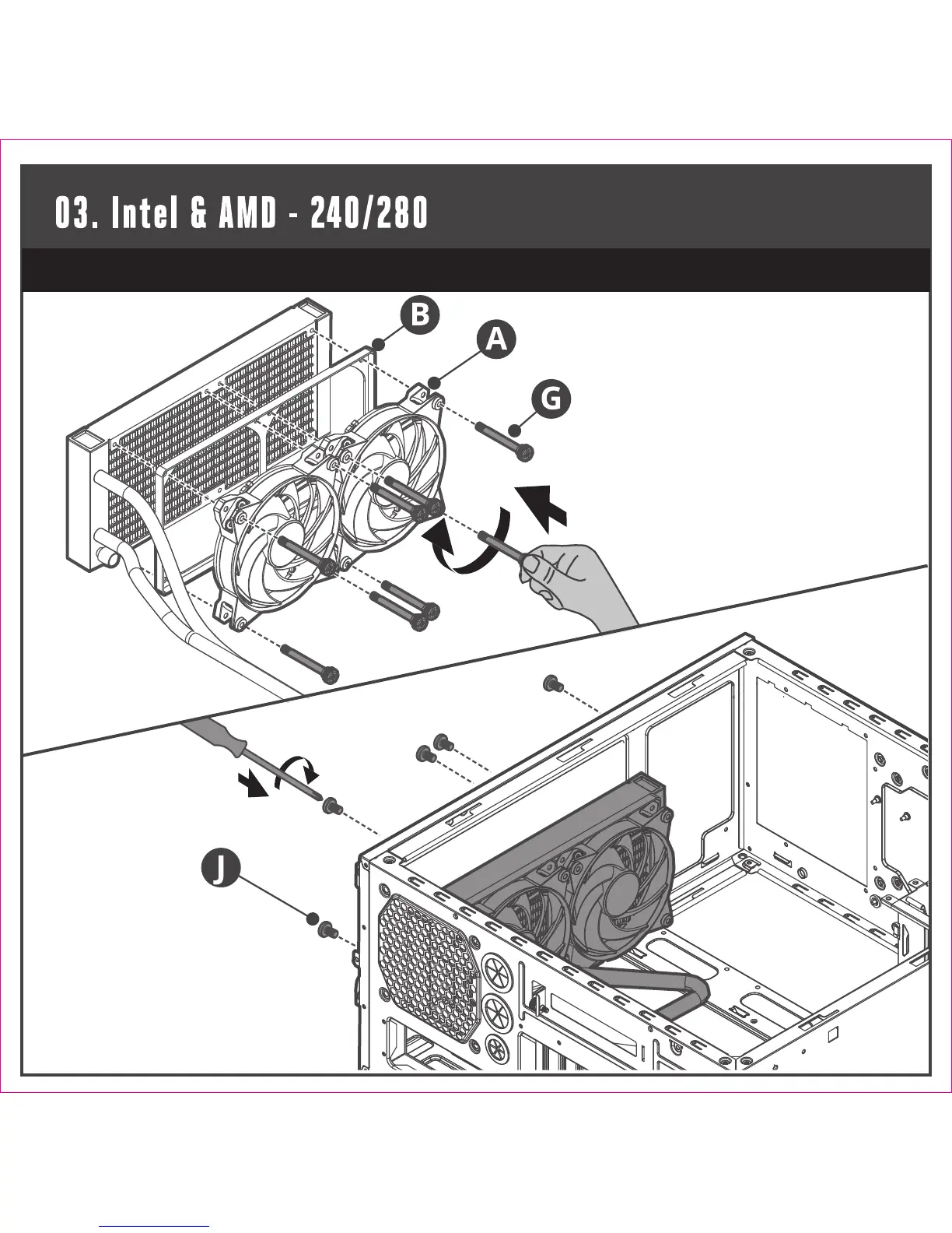 Cooler Master MasterLiquid Pro 120 - Intel and AMD 240;280 Installation Guide; Radiator and Dual Fan Assembly; Motherboard Mounting