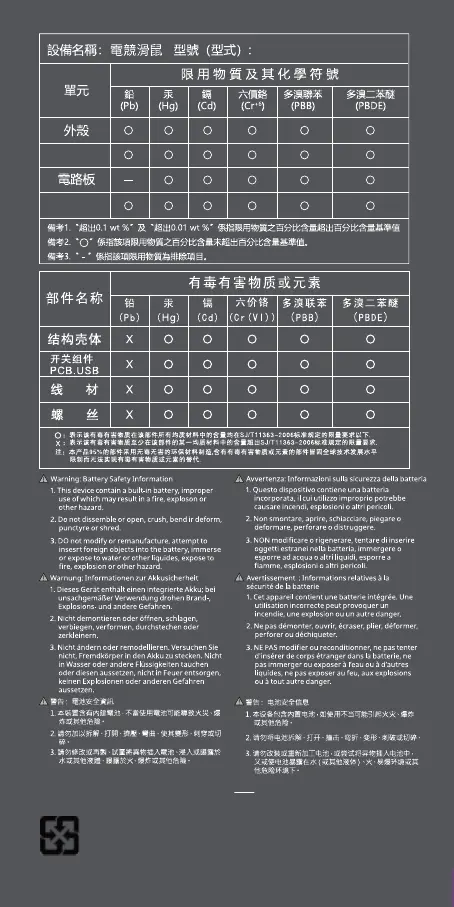 議之同款或同等級的電池來更換。請依原廠指示處理