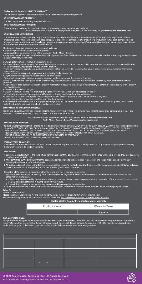 (Cooler Master Technology Inc., 7F., No. 398, Xinhu 1st Rd., Neihu Dist., Taipei City 114065 , Taiwan (R.O.C.). )