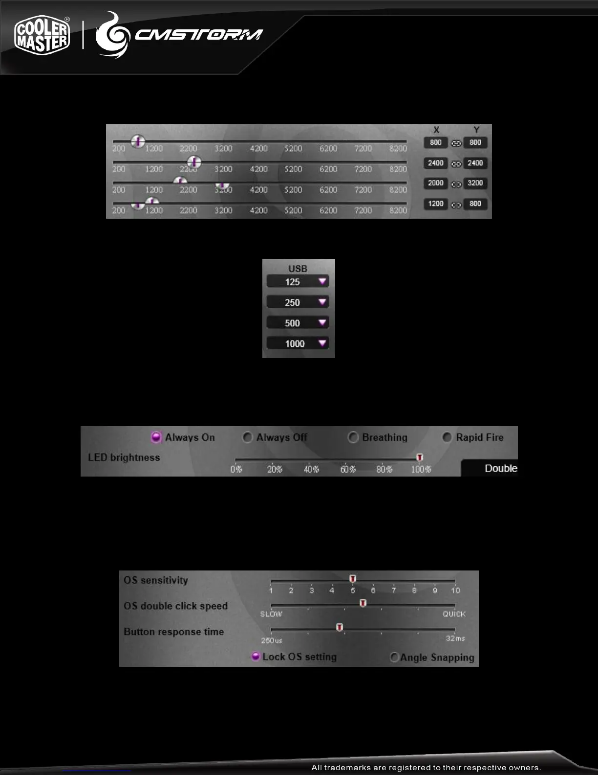 DPI can be adjusted for the X and Y axes of the mouse separately or together using the