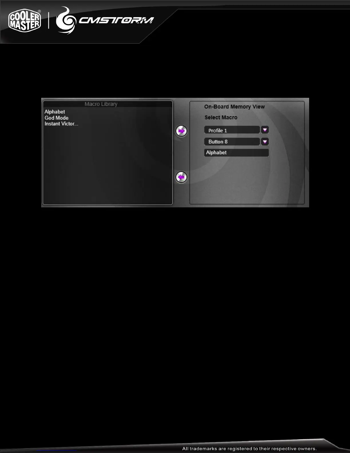 mouse to apply macros or import them to the PC using the center arrow buttons.
